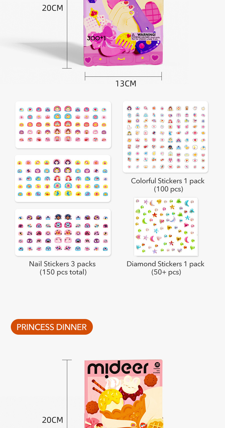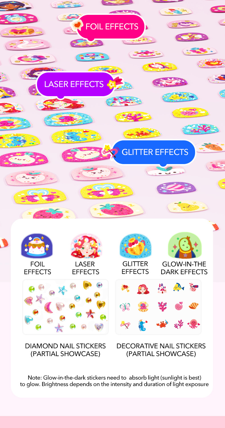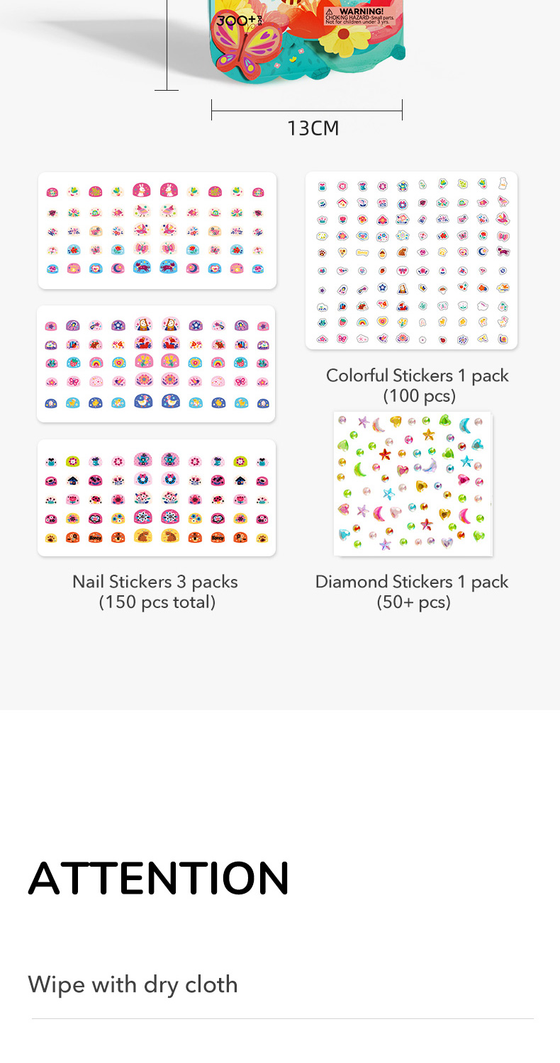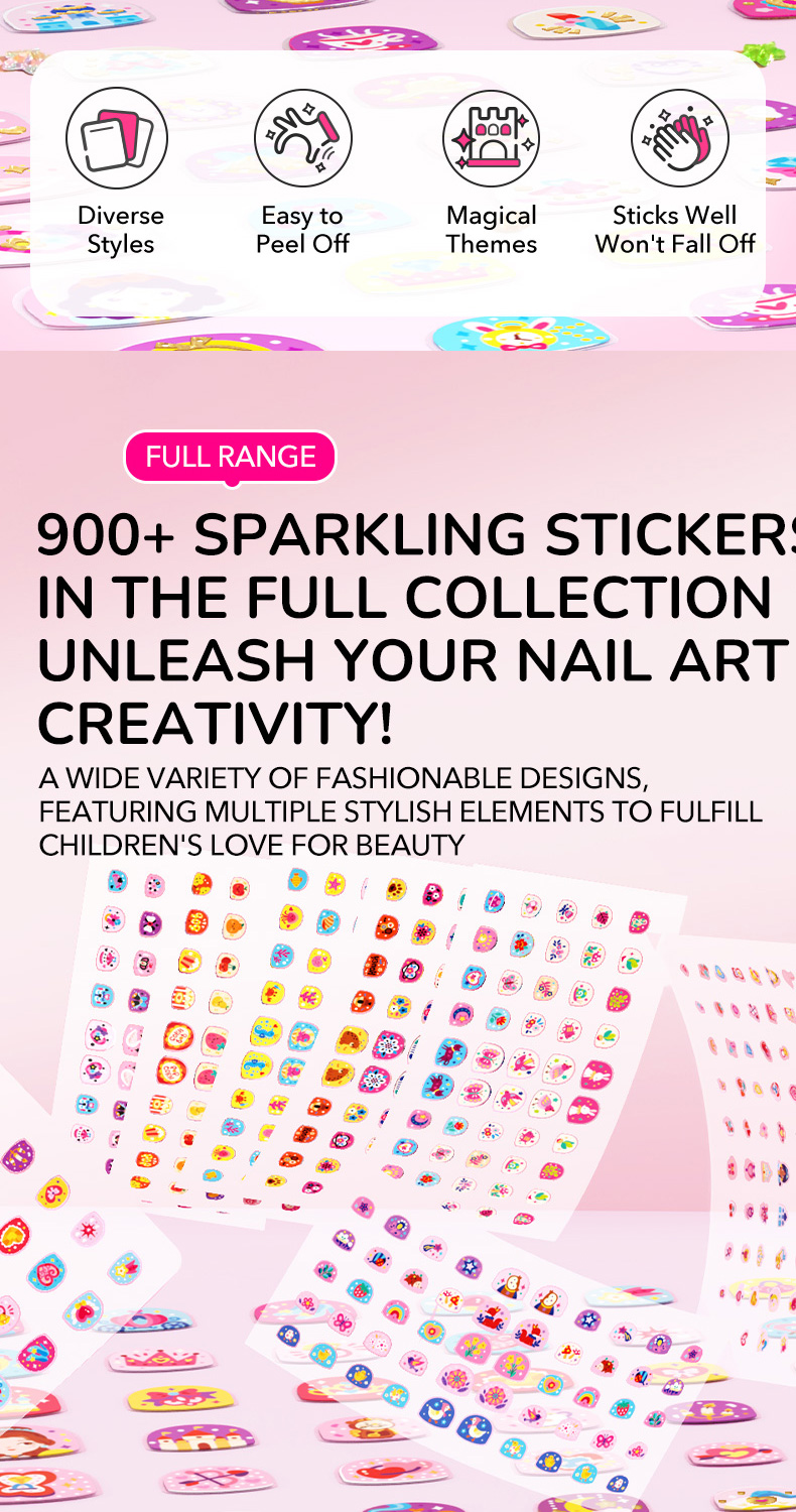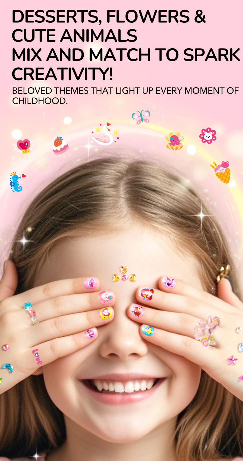 - Diverse Fashion Styles: Offers a wide variety of designs, including gold foil, holographic, glitter, glow-in-the-dark, diamond, and colorful classic stickers, satisfying every child’s desire for trendy and creative nail art.