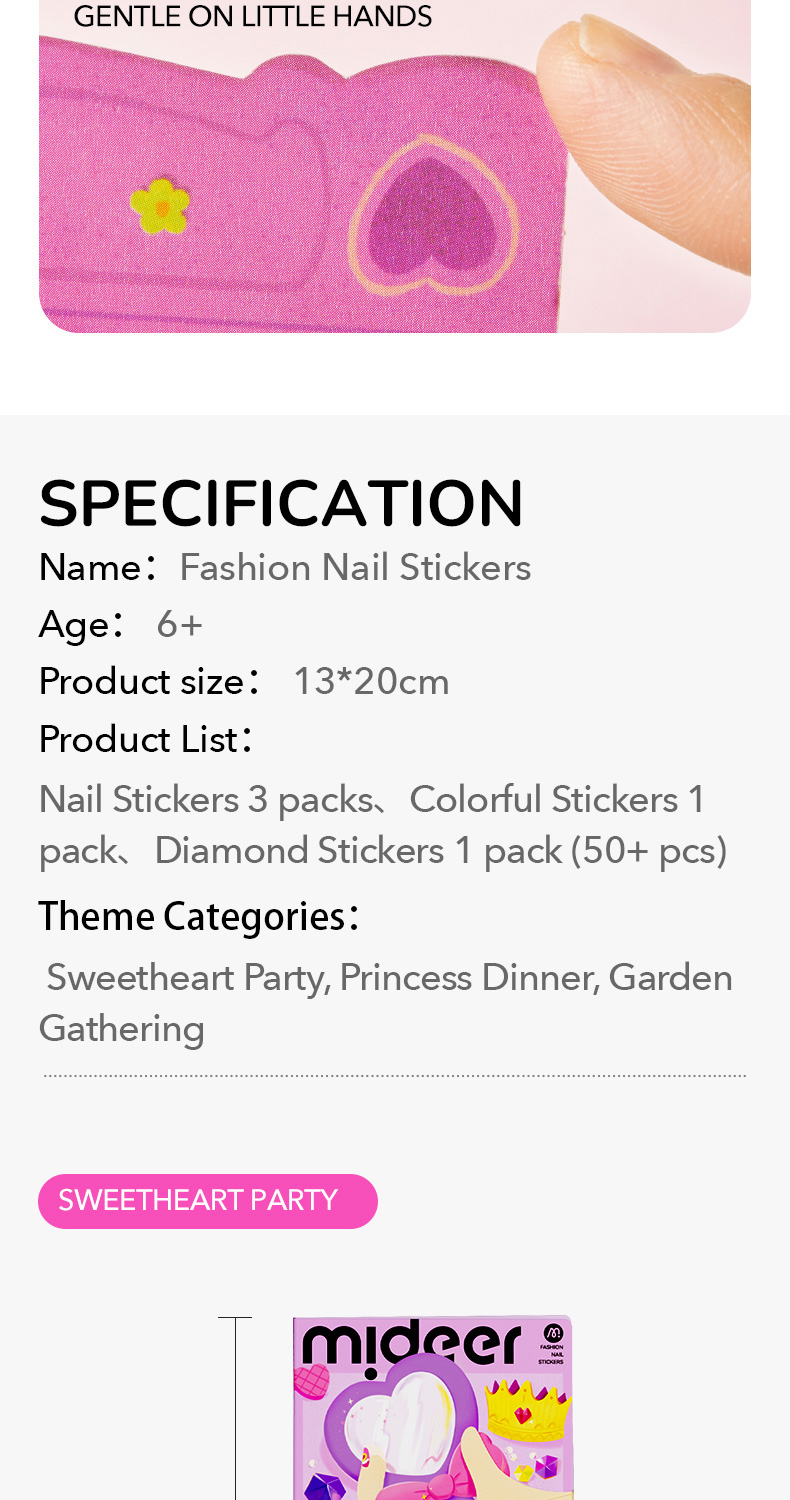 Fashion Nail Stickers is a fun and stylish way for kids to express their individuality. These nail stickers are designed to inspire creativity and self-expression while being safe and easy to use. Kids can simply peel and apply the nail stickers to their nails, experimenting with different styles and combinations to create their own unique look. The stickers stay on through everyday activities and can be easily removed without damaging nails.