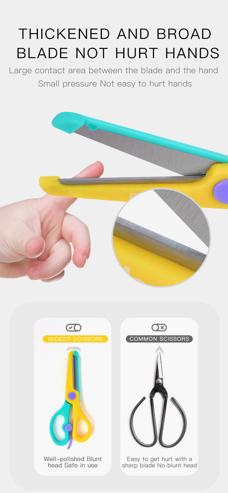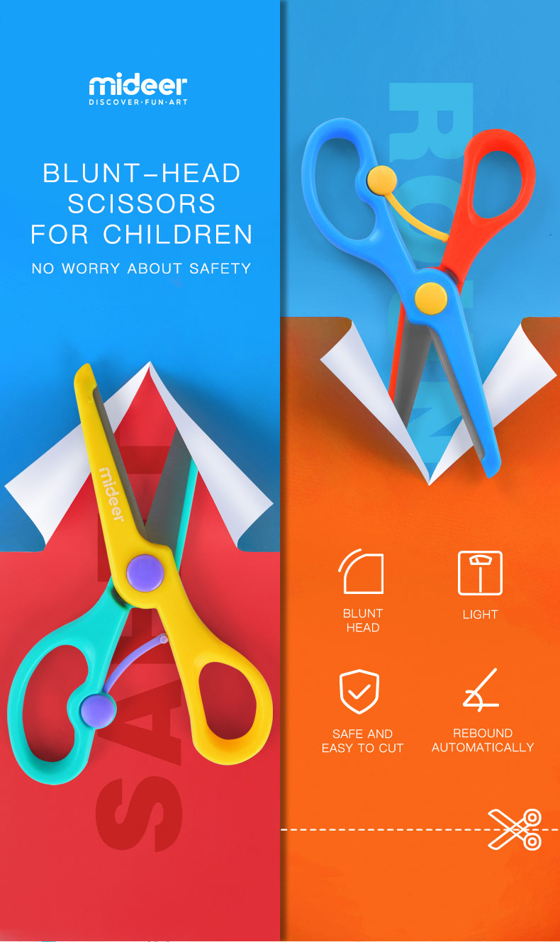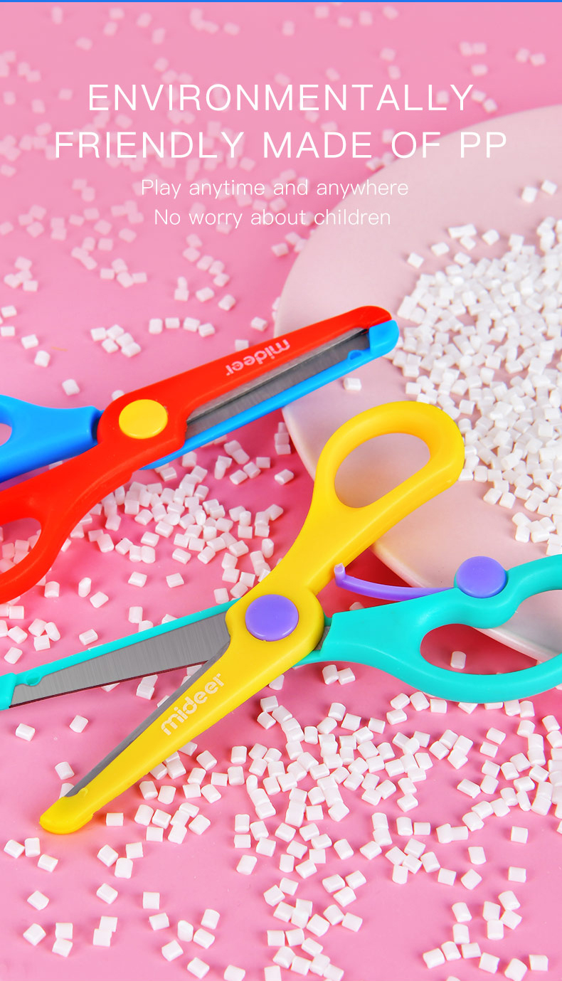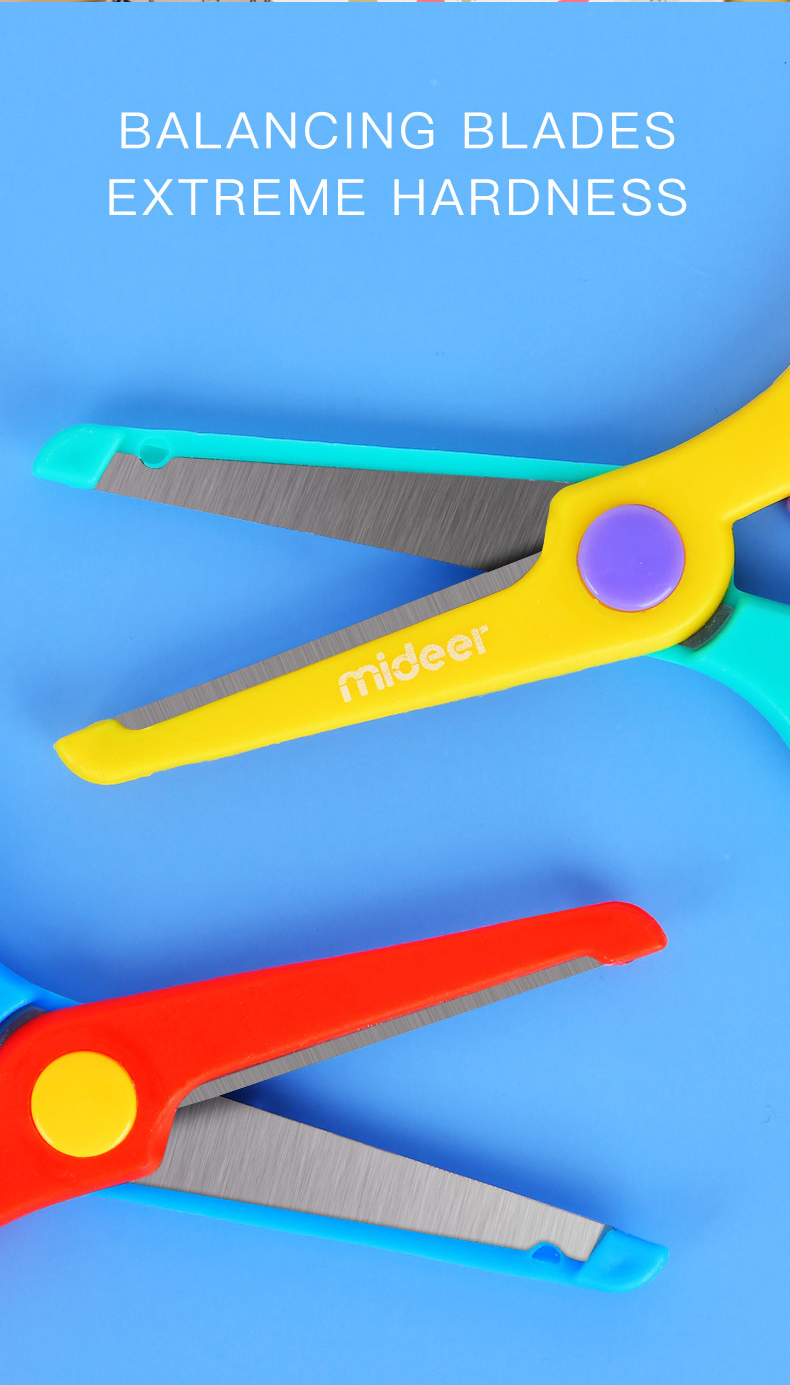- Make your kid’s art and playtime safer with the MiDeer Kids Scissors. It is specially designed for children to minimize all the dangers of handling a pair of scissors.