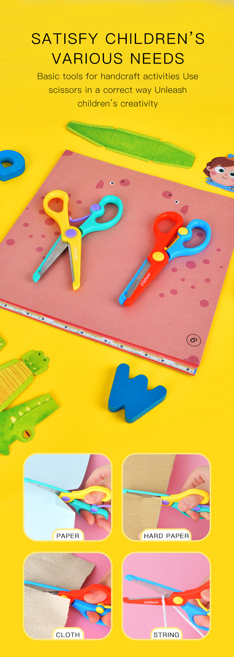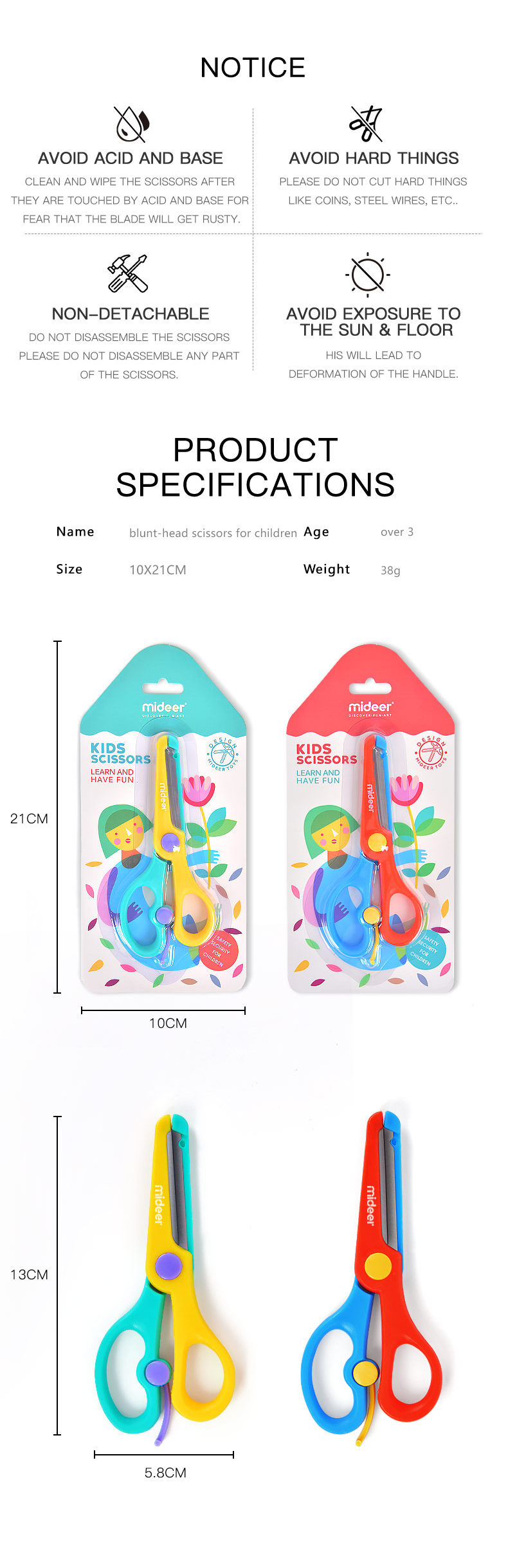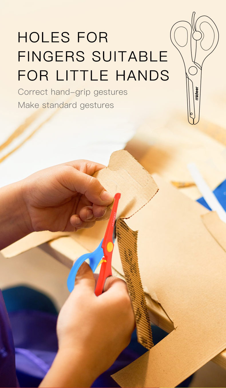 - Make your kid’s art and playtime safer with the MiDeer Kids Scissors. It is specially designed for children to minimize all the dangers of handling a pair of scissors.