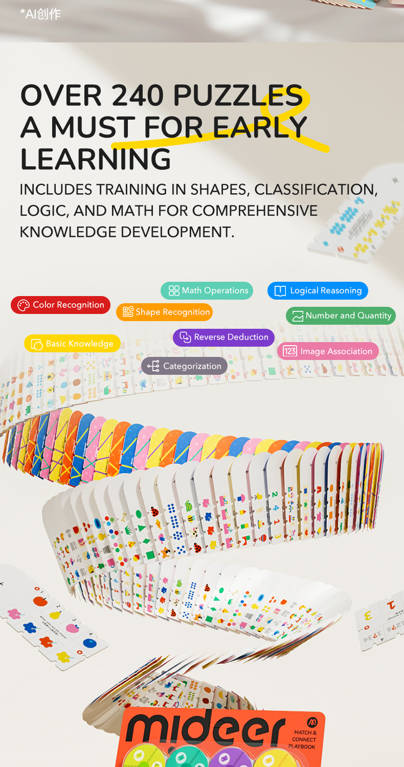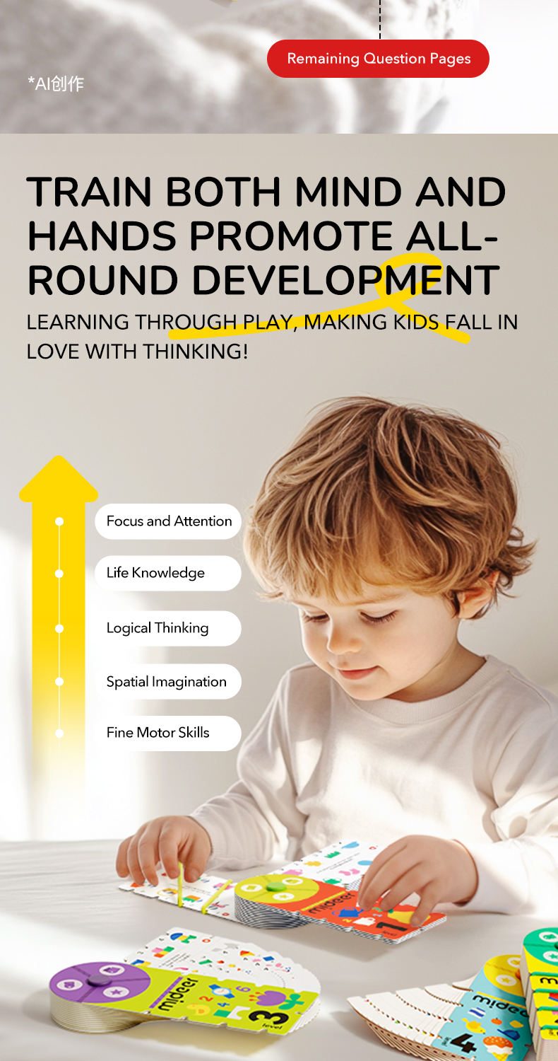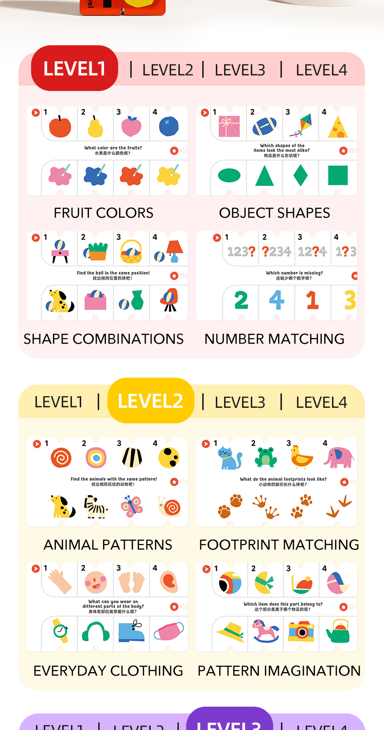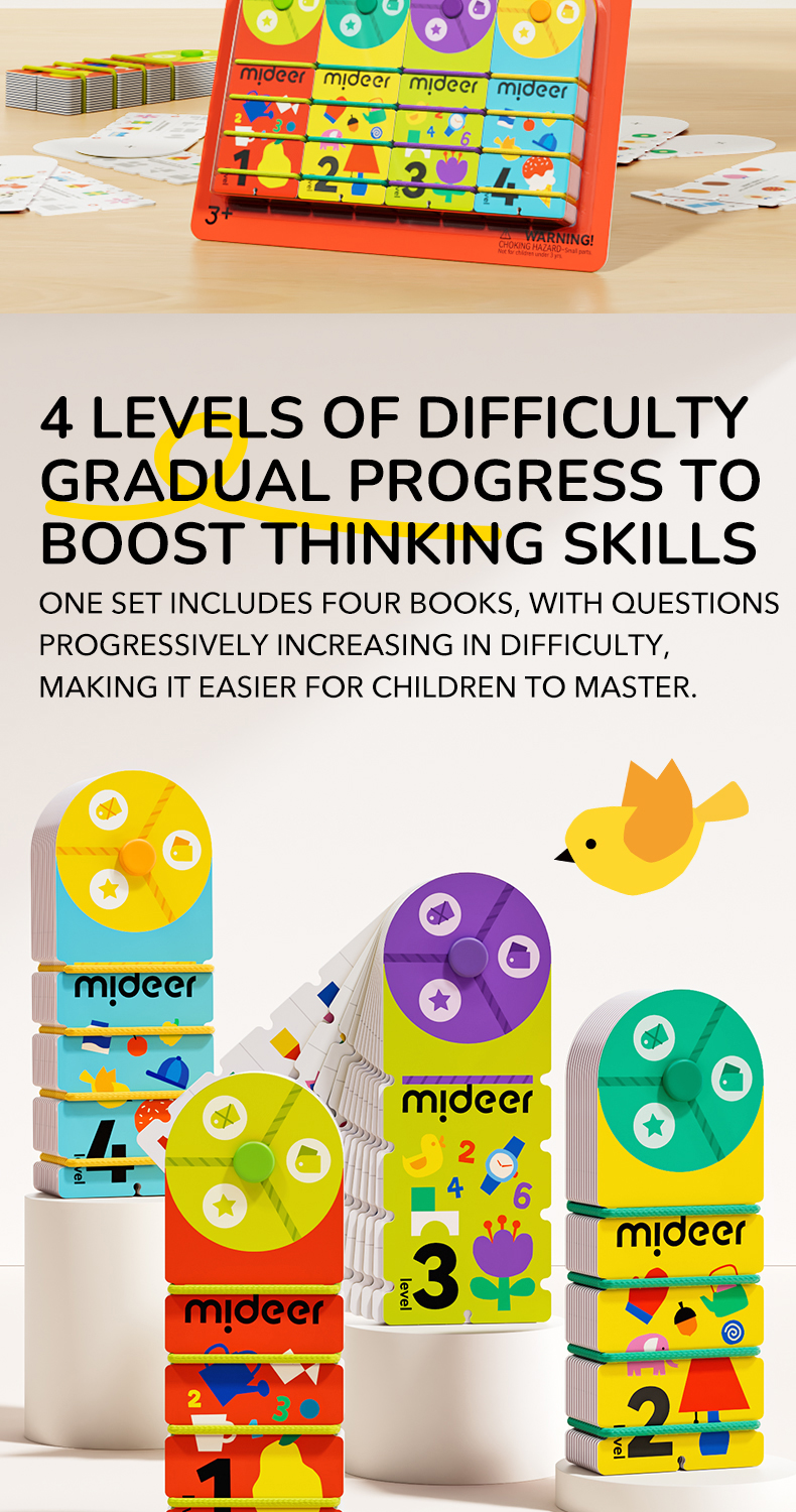 "Match & Connect Book" is an interactive brain teasers for Kids. It challenges young minds with fun quizzes that require problem-solving and critical thinking skills. With each turn of a page, kids will discover a new challenge and experience the thrill of finding the solution. Perfect for developing spatial reasoning, logic, and fine motor skills. It has 4 levels to fit different kids need. The answers to each quiz are on the back of the quiz card.