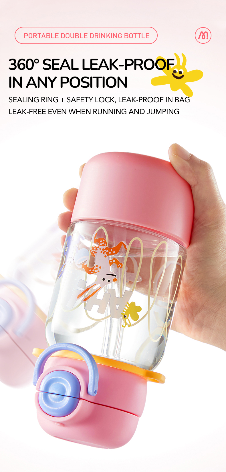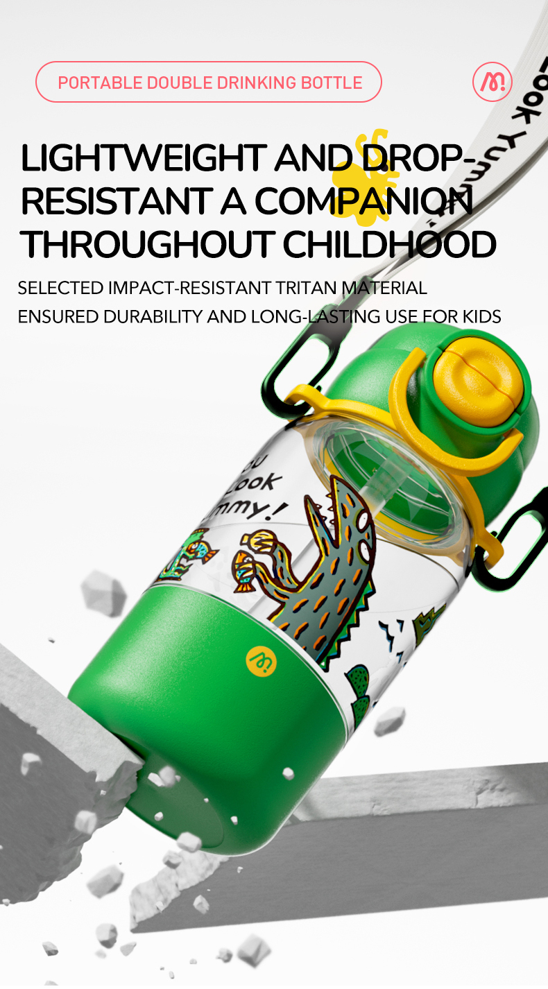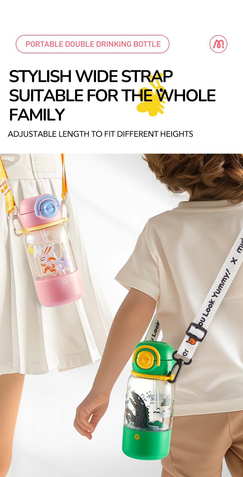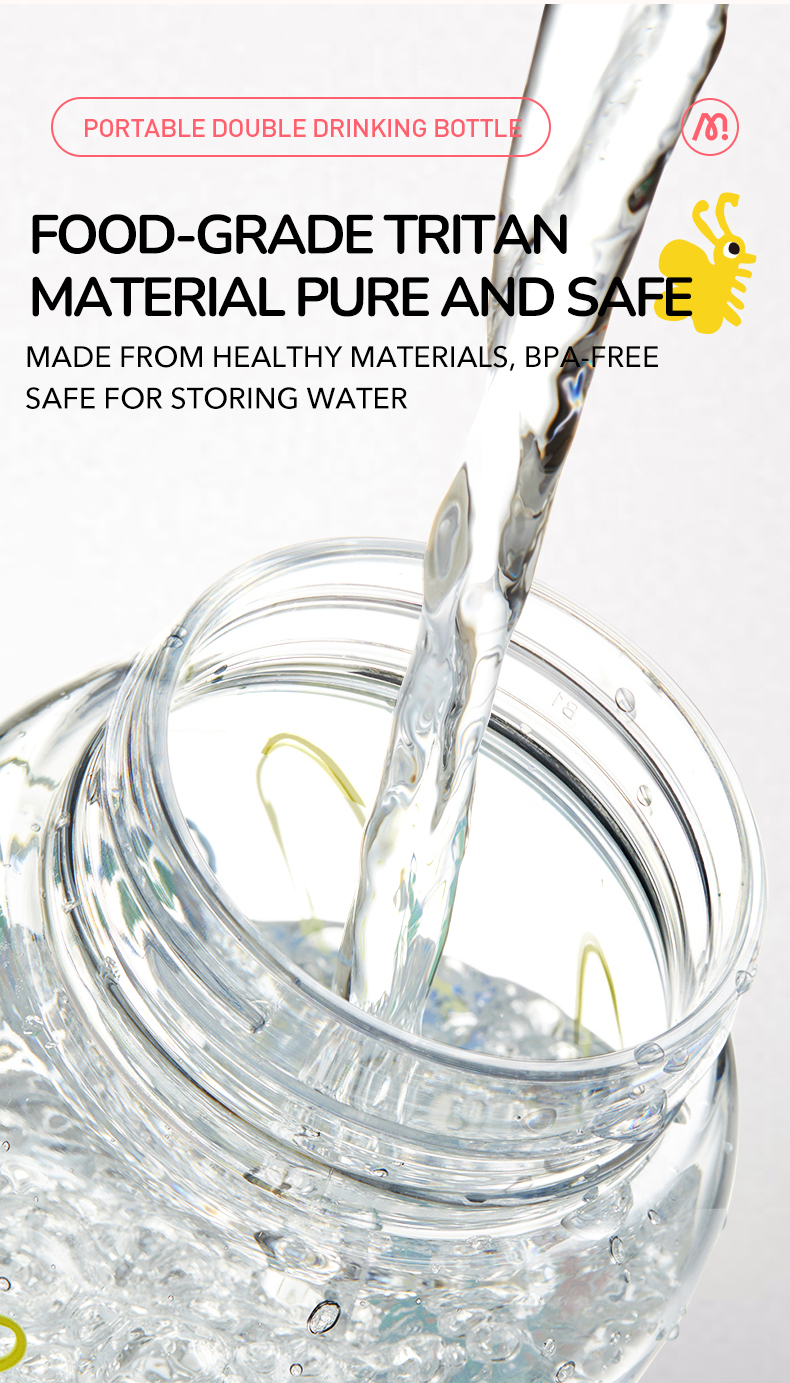 "Portable Double Drinking Bottle" is a versatile and innovative solution for children's hydration needs. This bottle is designed to be functional, durable, and safe, perfect for various activities from school to outdoor adventures.