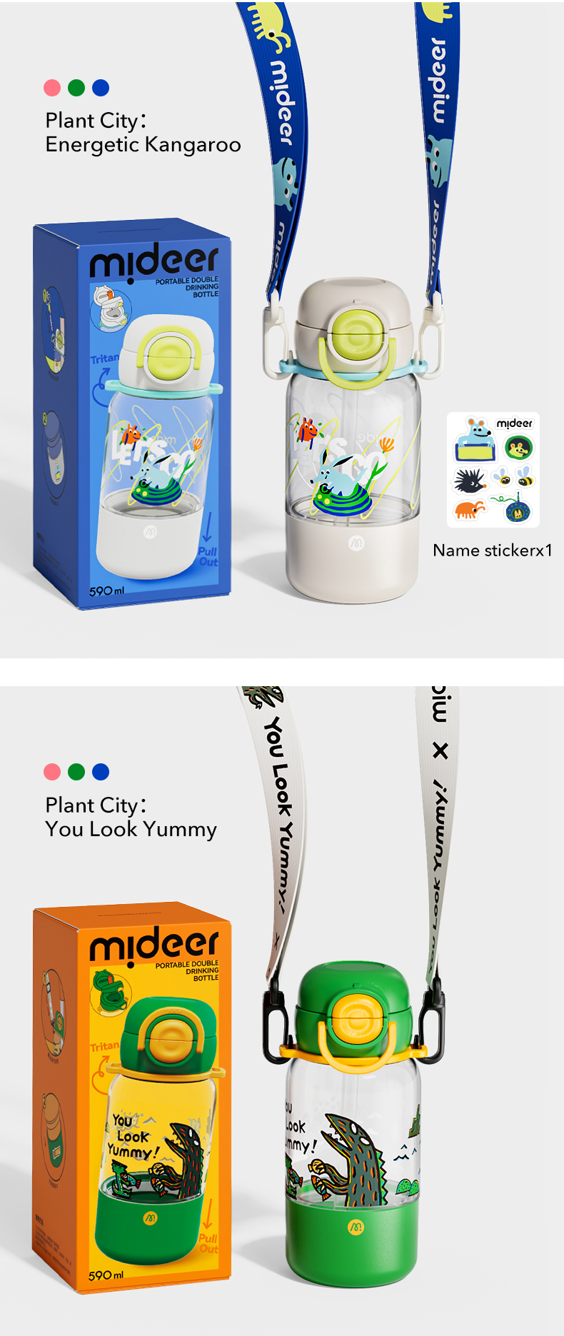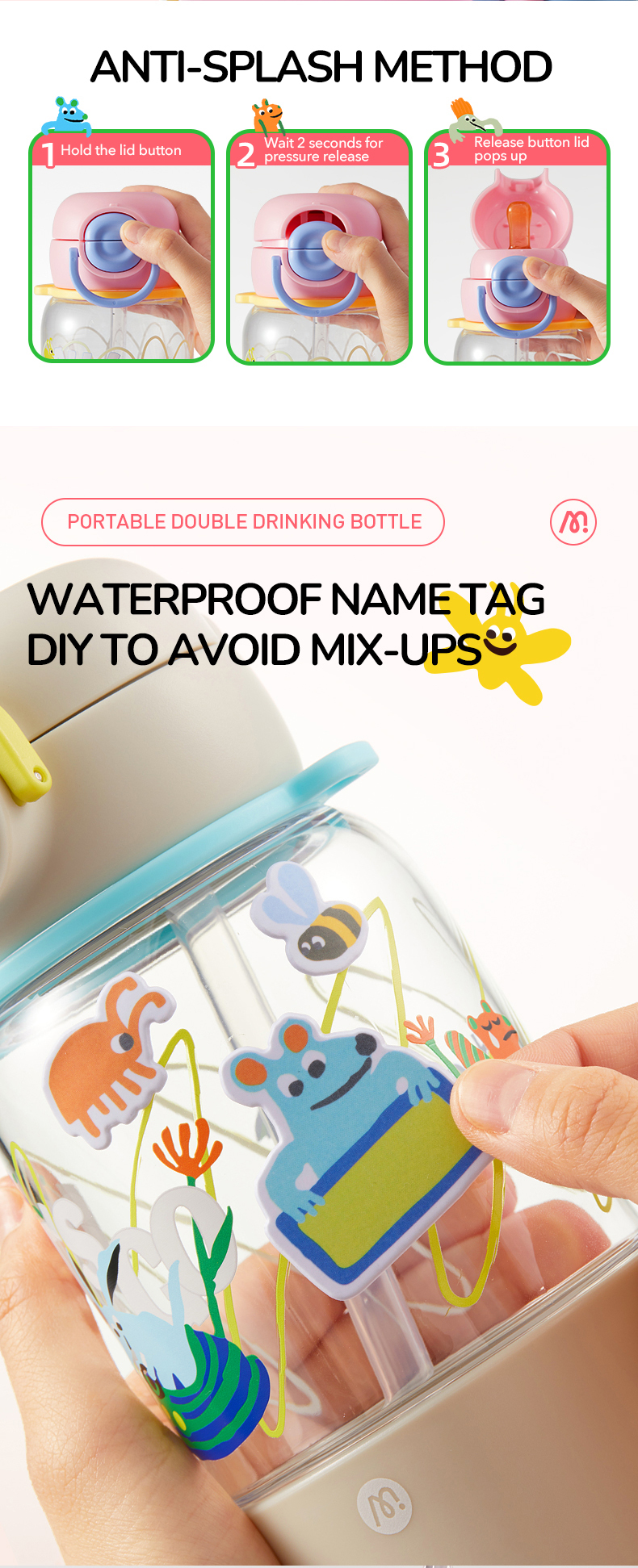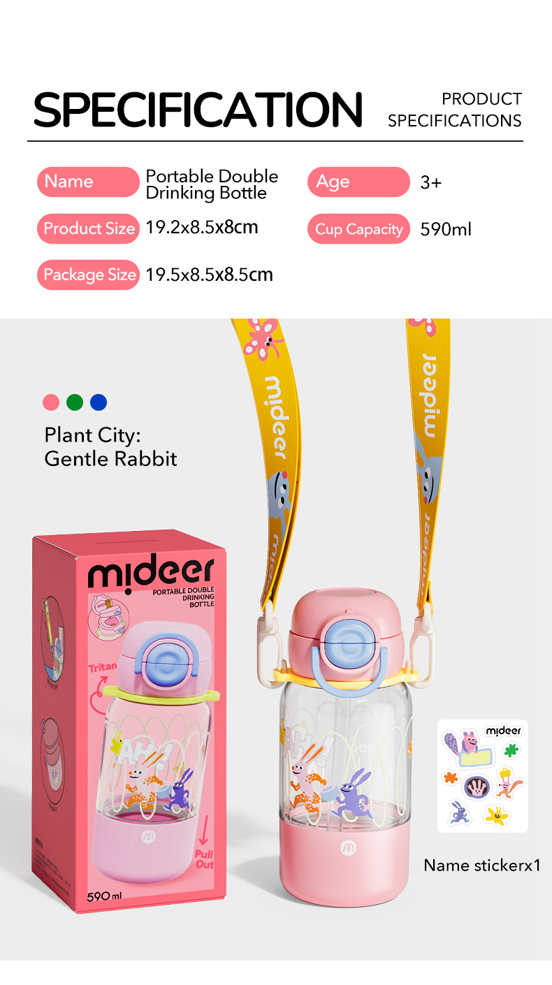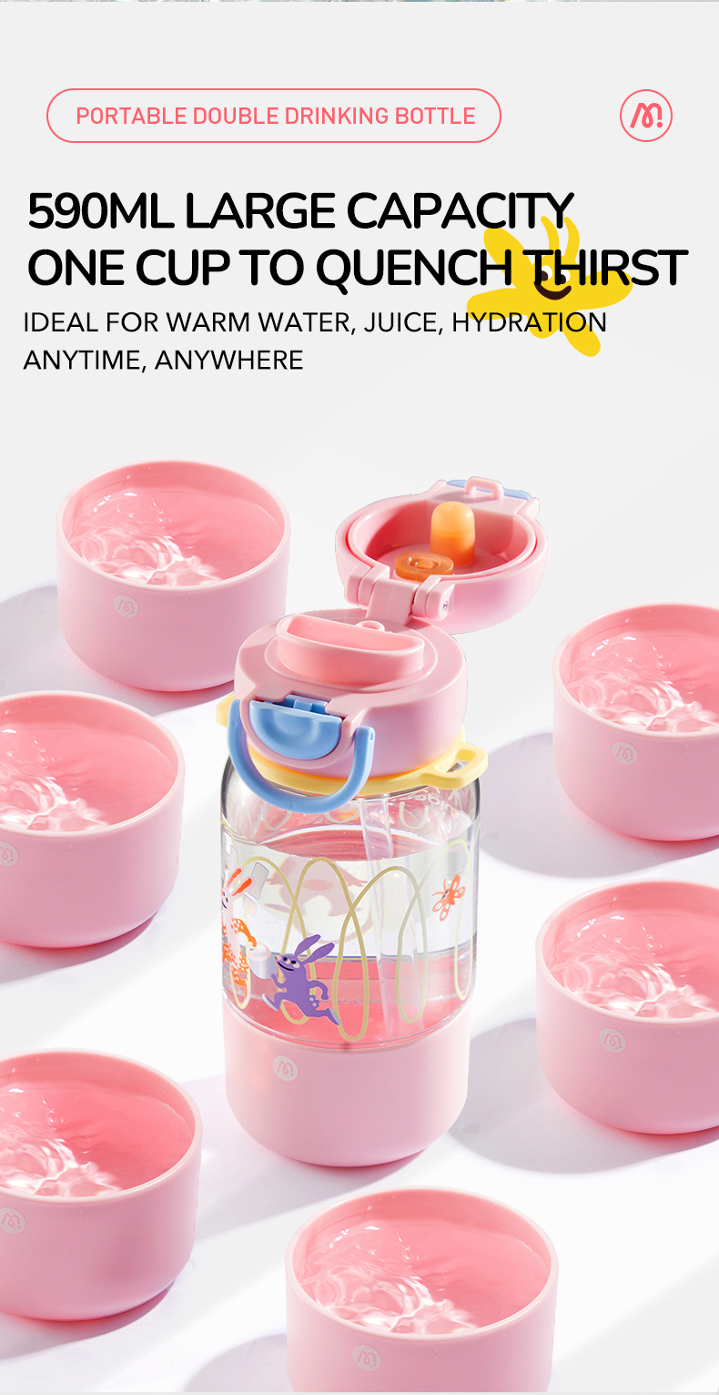 "Portable Double Drinking Bottle" is a versatile and innovative solution for children's hydration needs. This bottle is designed to be functional, durable, and safe, perfect for various activities from school to outdoor adventures.