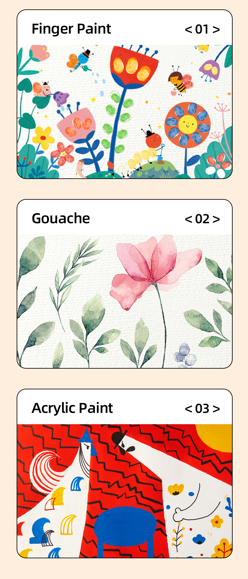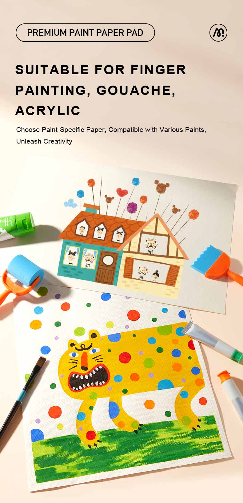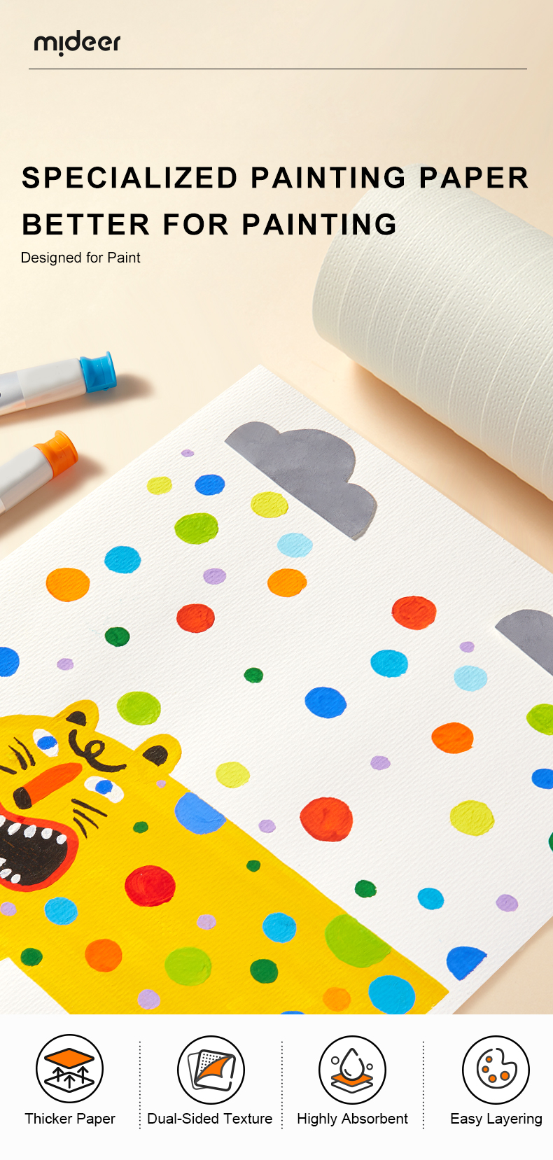 "Premium Paint Paper Pad" features thickened paper that efficiently absorbs pigment moisture, preventing bleed-through and keeping surfaces clean. With dual-sided textures, offering medium-coarse on one side and fine texture on the reverse, it caters to diverse artistic needs. Enjoy effortless layering and precise detailing on neatly cut, smooth-edged paper for a delightful painting experience.