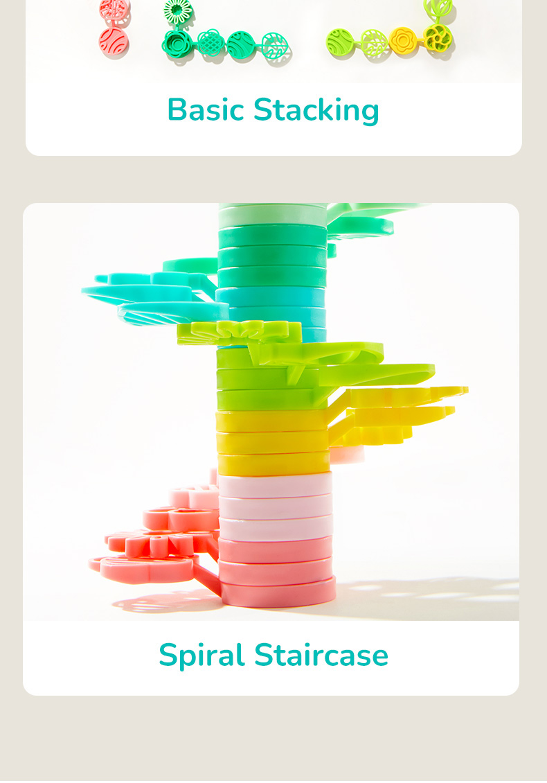 - Versatile Play Options: Unlock various ways to play such as sorting by color, building spiral staircases, assembling numbers, and forming letters, fostering endless creativity.