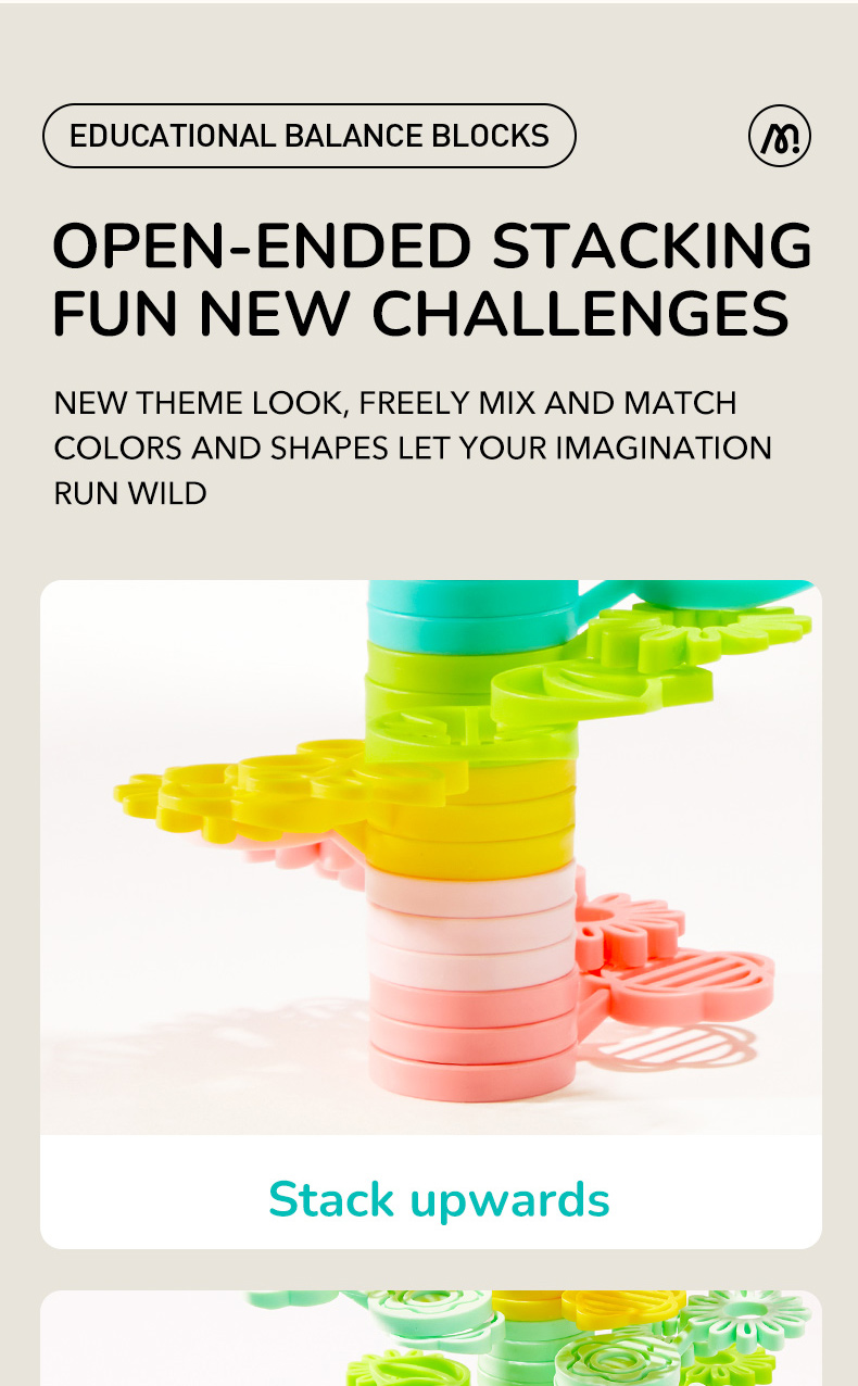 "Educational Balance Blocks" is a uniquely designed building set that combines creativity, education, and family fun. This innovative toy allows children to explore and expand their imaginative capabilities while learning about balance and aesthetics.